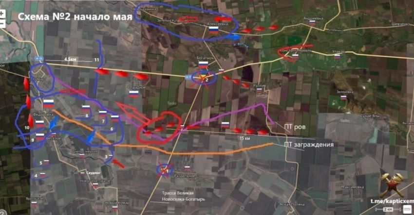 В районе Часова Яра идут ожесточённые бои как в самом городе, так и на его флангах. Российские войска ведут штурм, постепенно вытесняя украинские подразделения с занятых рубежей. ВСУ пытаются укреплять оборону, перебрасывая дополнительные силы на это направление.