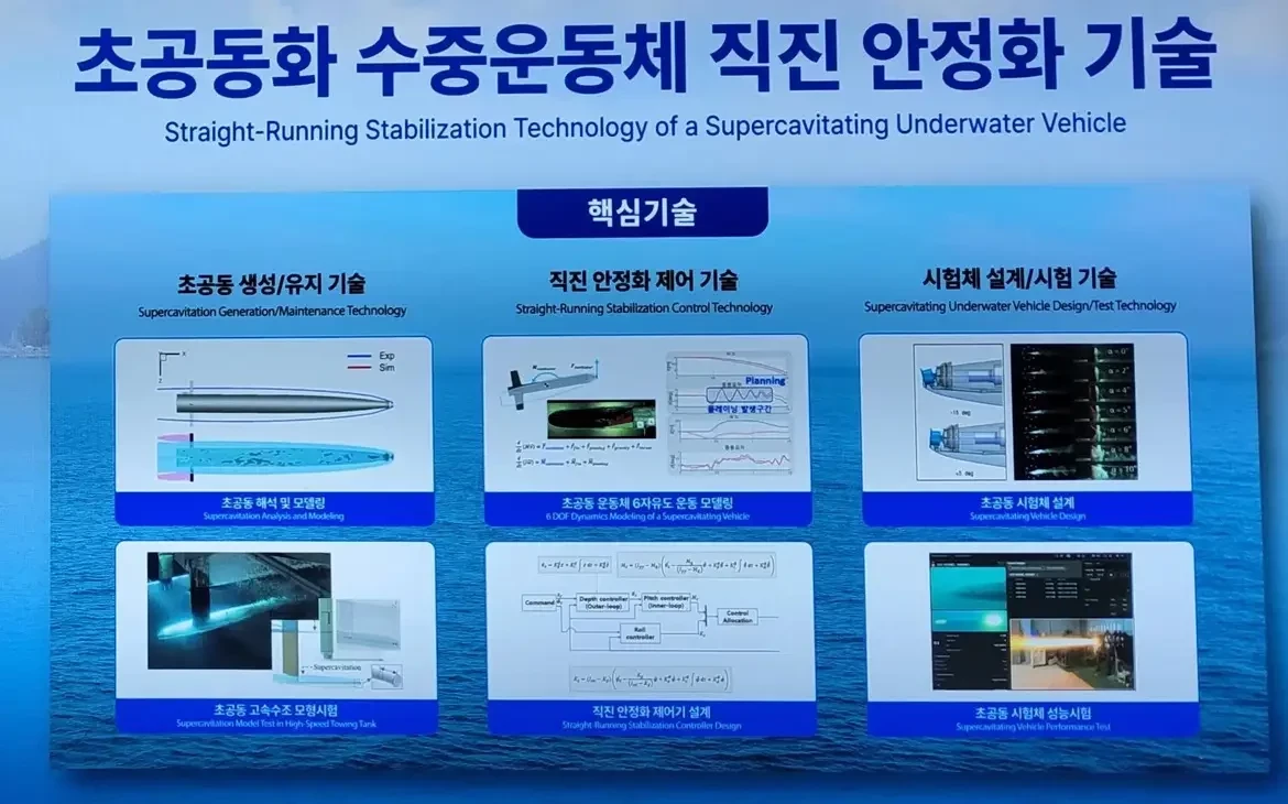 Промышленность Южной Кореи пытается самостоятельно разрабатывать новое вооружение для военно-морских сил и берётся за самые сложные проекты. Например, в течение нескольких последних лет ведется разработка сверхскоростной реактивной торпеды, использующей принцип кавитации. К настоящему времени этот проект дошёл до стадии испытаний. Кроме того, макет новой торпеды впервые показали публике.