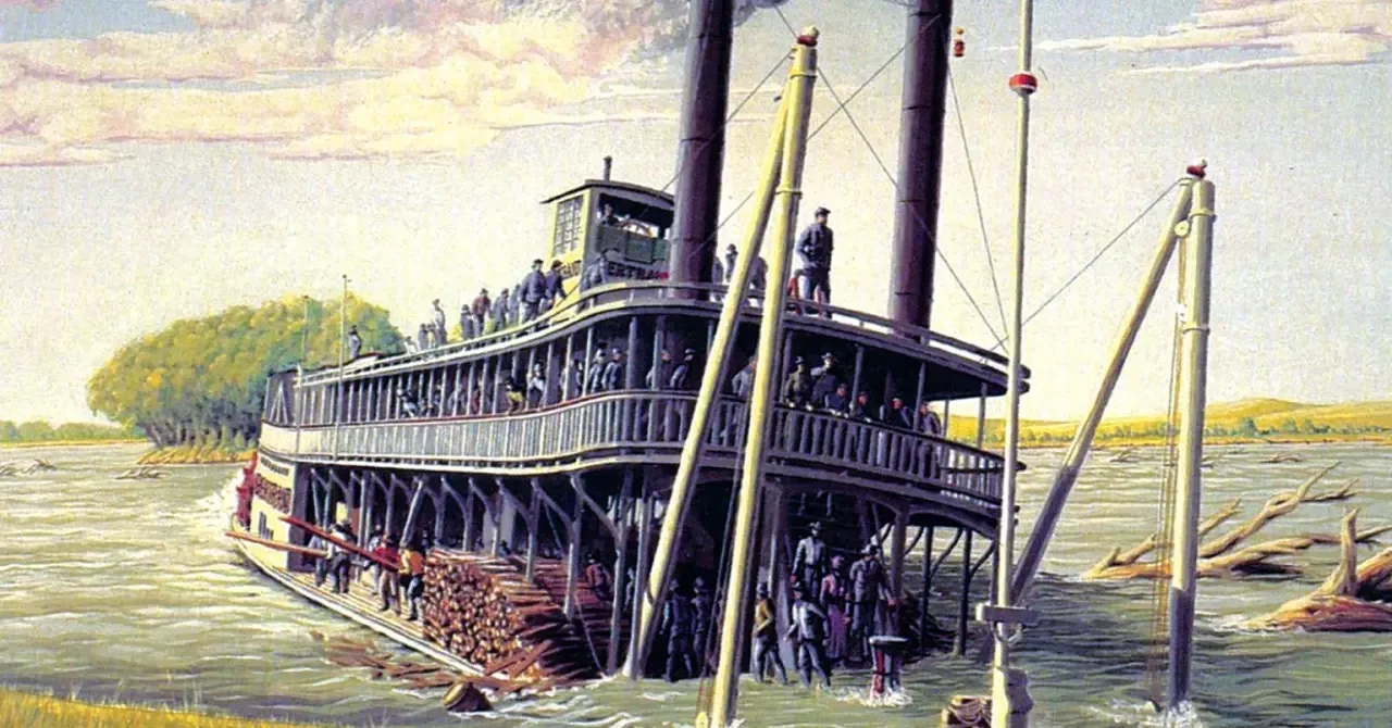 Возможно, что вот именно так он и затонул…Гибель парохода «Бертран» на Миссури 1 апреля 1865 года