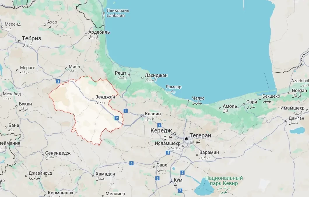Провинция Зенджан находится к западу от столицы страны, Тегеран, неподалёку от Каспийского моря.