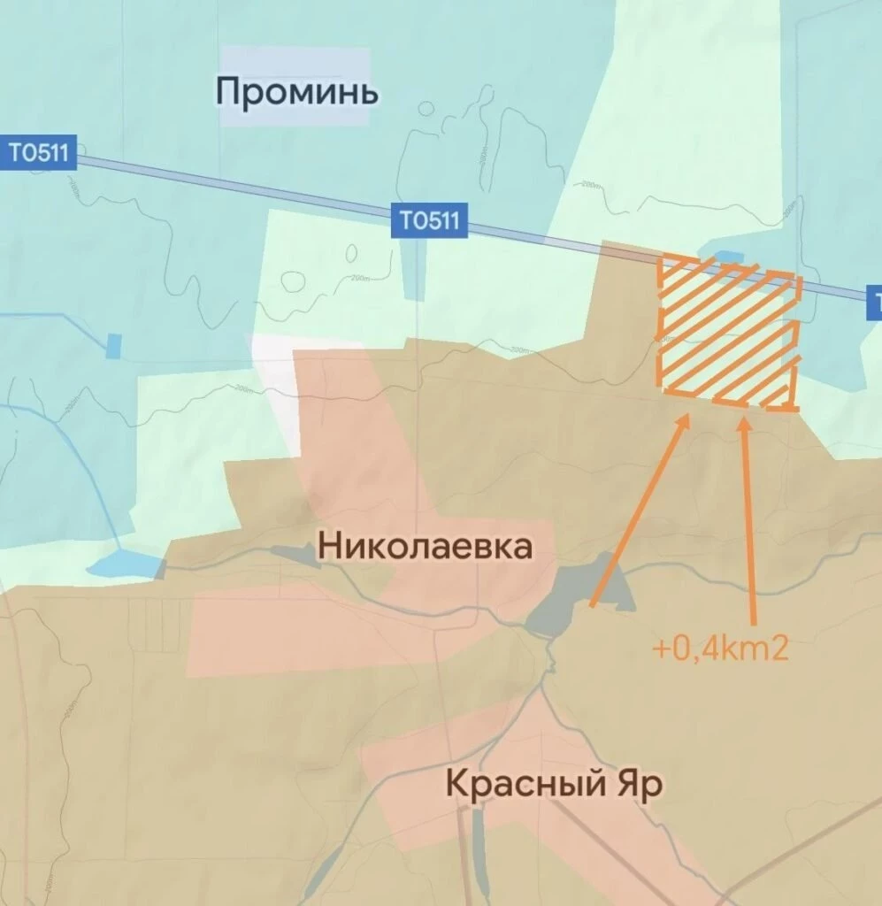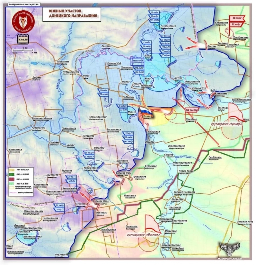 На Запорожском направлении ВС РФ продвинулись юго-западнее Бурлацкого и Новополья. Отмечаются локальные боестолновения в районе Малиновки, Щербаков, Малых Щербаков и Степового.