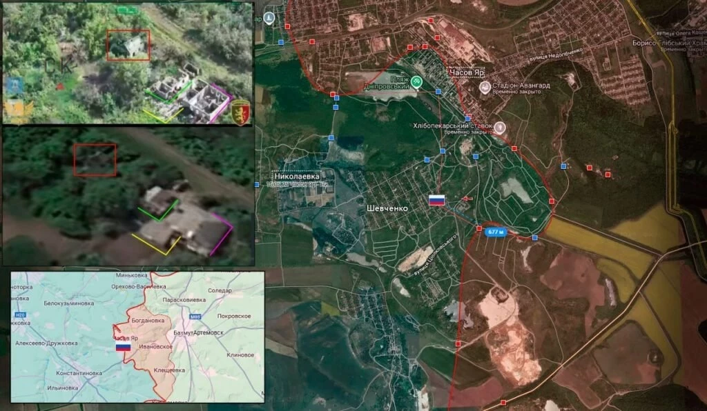 На Константиновском направлении российские войска расширили контроль территории западнее Курдюмовки, давят восточнее Дылеевки и в районе Озаряновки, продолжаются встречные бои. ВС РФ ведут штурмовые действия севернее Торецка в направлении восточной окраины Клебан-Быкского водохранилища и в районе Нелеповки. Продолжаются встречные бои на южной окраине Александро-Калиново и в Яблоневке.