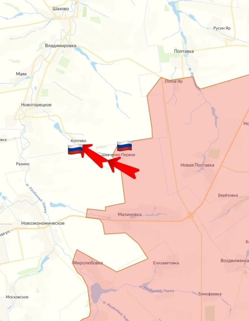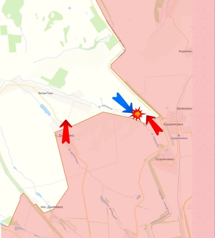 К западу от Торецка упорные бои в Яблоновке. Продолжаются бои в Александро-Калиново. Севернее Торецка ВС РФ штурмуют позиции противника в районе Нелеповки у восточного берега Клебан-Быкского водохранилища. Успех на этом участке позволит перерезать основные дороги ВСУ, включая ж/д, на Константиновку.