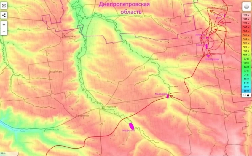 На ГуляйПольском направлении Вооружённые силы Российской Федерации (ВС РФ) ведут боевые действия за населённый пункт Малиновка. В том случае, если российским бойцам удастся выбить противника на данном участке фронта, то постепенно начнётся охват самого населённого пункта Гуляй Поля с востока и дальше с северо-востока.
