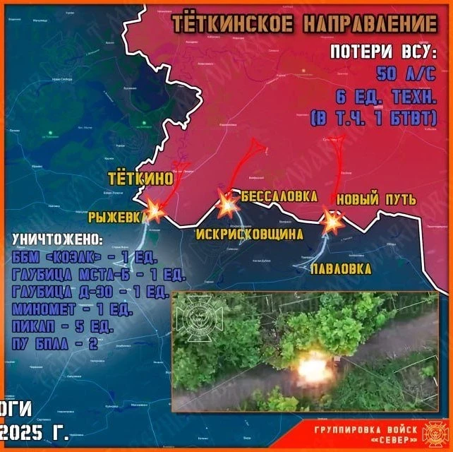 Командование Вооружённых сил Украины (ВСУ) продолжает отправлять на убой штурмовые группы на Тёткинском и Глушковском направлениях, перебрасывая на данный участок фронта новые подразделения. Северяне отражают атаки противника, не допуская прорыва оккупантов вглубь Курской области.