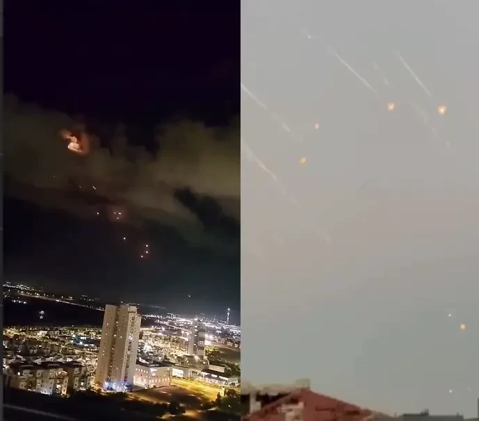 Горящие здания в Израиле и горящий нефтяной терминал в Иране