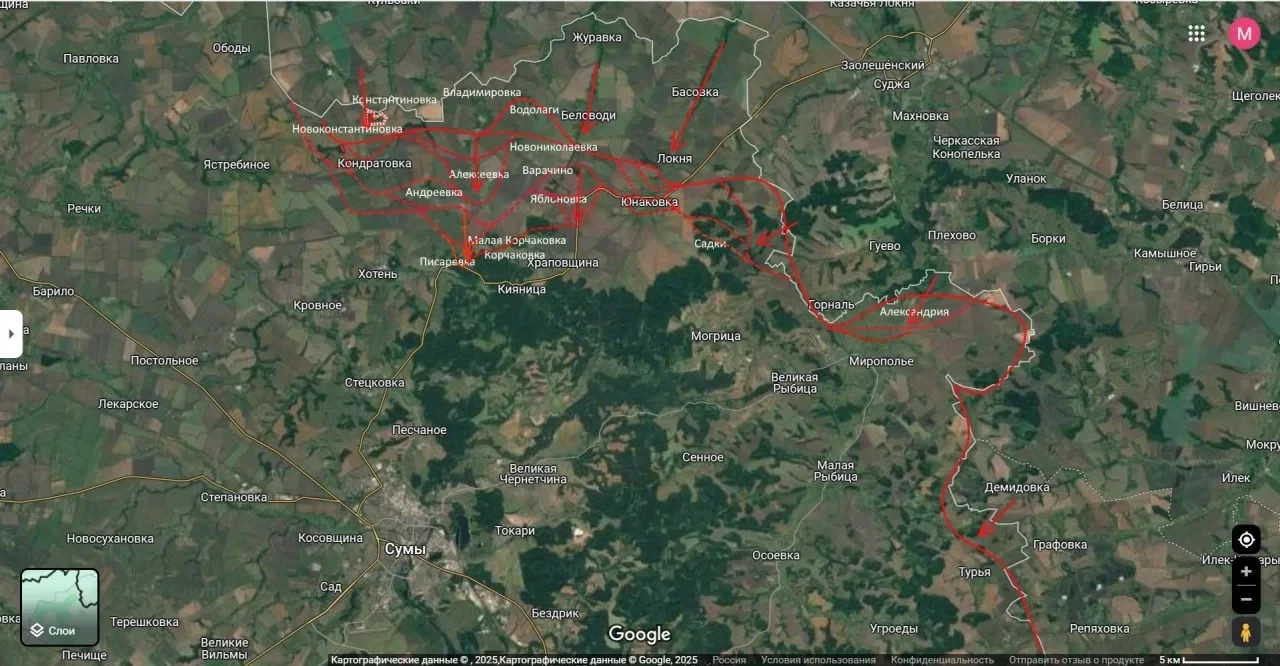 На Сумском направлении российские бойцы сосредоточили усилия на районе села Кияница, контроль над которым, по словам Подоляки, является критически важным для дальнейшего наступления на Сумы. Особое значение имеют холмы южнее Кияницы, утрата которых может подорвать оборону города.