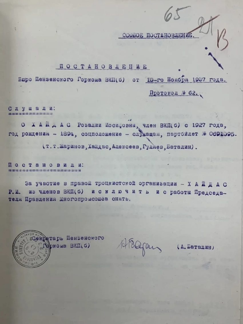 А за что еще можно было вылететь с работы и из партии в 197 году? Оказывается за переписку с родственниками за границей. А еще если среди родственников жены были расстрелянные за контрреволюцию. Сочувственные высказывания по поводу самоубийства Гамарника…