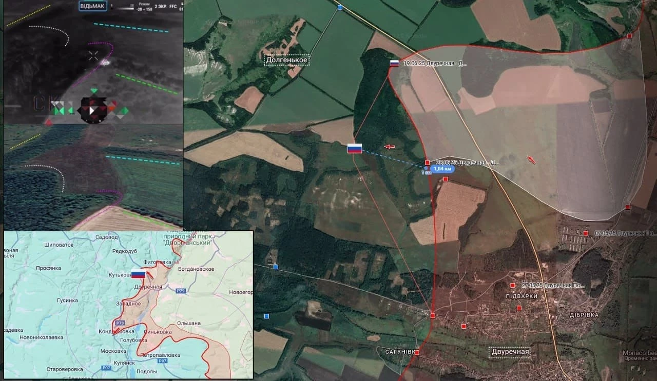 На Сумском направлении армия Российской Федерации практически полностью освободила село Юнаковка. Продвижение составило+4,3 км2. Более 30 солдат элитного британского взвода ВСУ уничтожили наши войска в результате этого сражения. Враг пытается вернуть Андреевку, контратакуя наши позиции. Наши дроны находят и поражают вражеские группы. Из Храповщины в сторону Яблоновки противник атаковал на танке. Российские солдаты подбили его при отступлении.