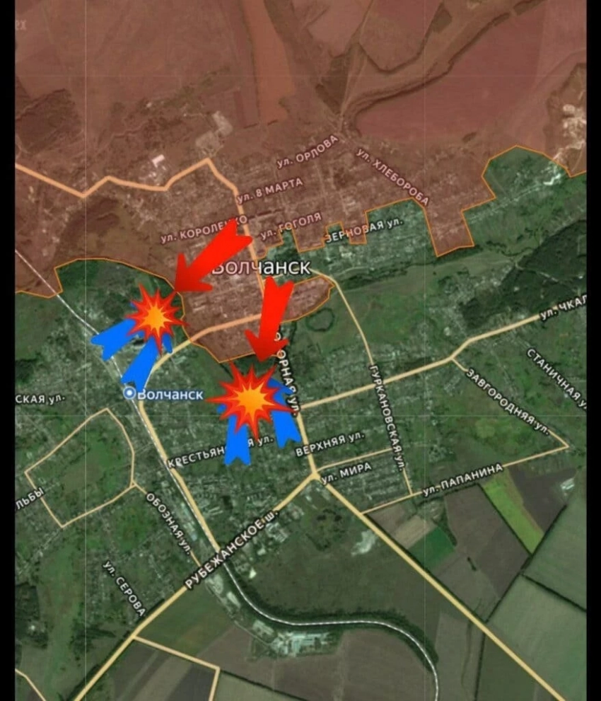 На Харьковском направлении ВС РФ используют, преимущественно, средства дальнего поражения, включая авиацию. В результате огневого поражения уничтожены десять штурмовых групп ВСУ, склады боеприпасов и ПУ БпЛА. За сутки ВС РФ зачистили шесть домовладений в Волчанске, а также с упорными боями продвинулись в лесных массивах в районе бывшего районного центра. Украинские оккупанты предприняли две безуспешные контратаки. Первая штурмовая группа ВСУ уничтожена Северянами на западной окраине Волчанска, вторая в лесном массиве рядом с городом.