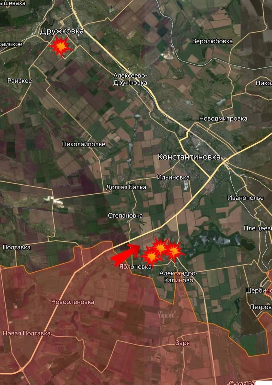 В Часов Яре продолжаются жёсткие бои. Вооружённые силы Российской Федерации (ВС РФ) зачищают мкр. Шевченко, закрепляются севернее Николаевки, под контроль взяты дороги на Константиновку. Минобороны подтвердило освобождение Предтечино.