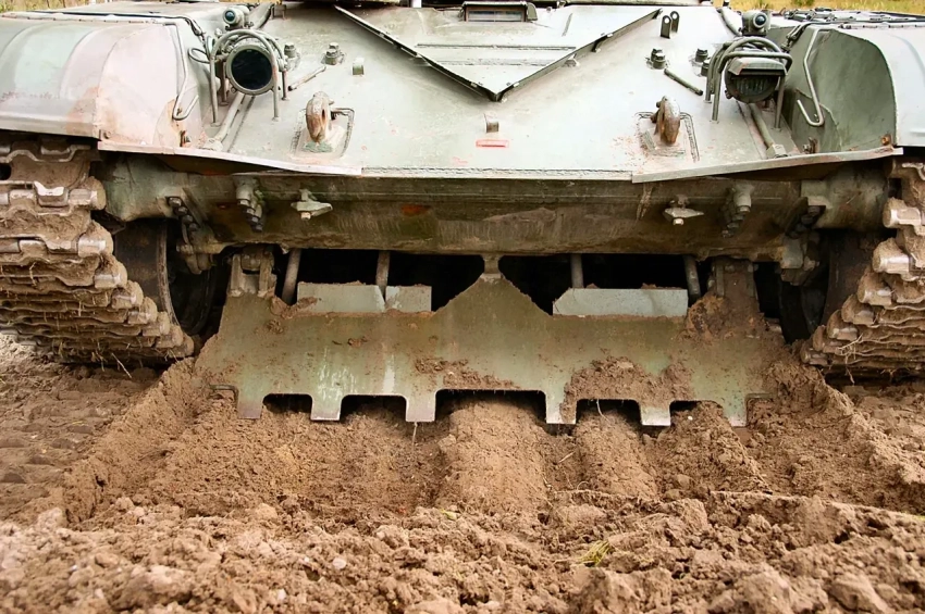 Из разряда сугубо механических средств защиты от ядерного взрыва можно назвать системы самоокапывания. На танках этот узел реализован с виду достаточно просто – 200-килограммовый отвал шириной два с небольшим метра размещался на нижнем лобовом листе корпуса. Из походного положения он переходил в рабочее за пару минут и обеспечивал рытье капонира за 40 минут. Капонир представляет собой углубление длиной 12 метров, шириной 5,5 метров и глубиной в полтора метра. В итоге получалось укрытие, которое не только снижало действие ударной волны, но и маскировало танк. Система самоокапывания имеет некоторые ограничения – запрещается работать на мёрзлом и каменистом грунте, а также на участках с валунами, пнями, кирпичной кладкой и прочими препятствиями.