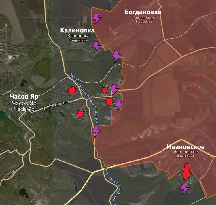 На северном фланге, если говорить о Константиновском направлении, продолжаются ожесточённые бои в районе Калиновки. За последние сутки существенного продвижения не зафиксировано. В микрорайоне Канал, что на востоке Часов Яра, также идут ожесточённые и кровопролитные бои. Основные участки – высотная застройка на юго-востоке и Часовоярский ремонтный завод.