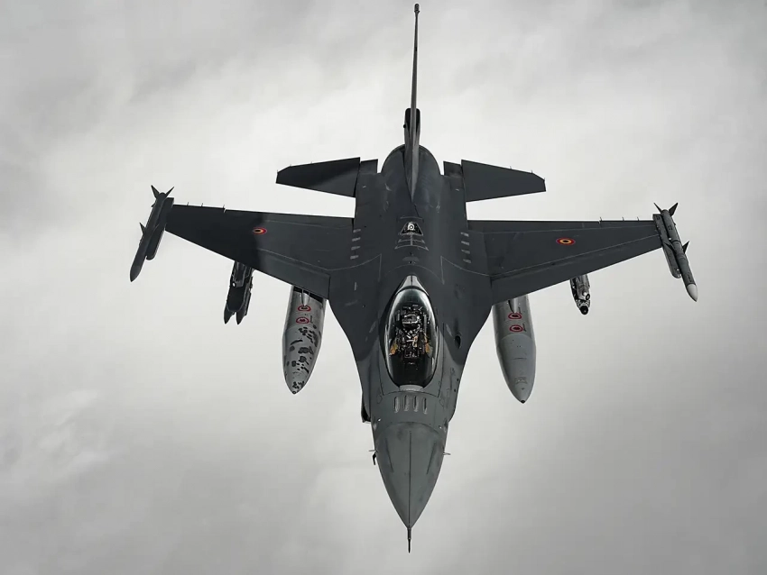 Истребитель F-16 ВВС Бельгии, действующий над зоной ответственности Центрального командования США (CENTCOM), вооруженный как JDAM, так и авиабомбами малого диаметра