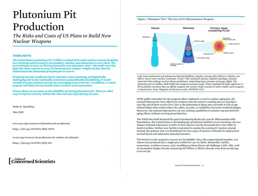 США ускоряют ядерную программу, увеличивая объёмы производства плутониевых сердечников
