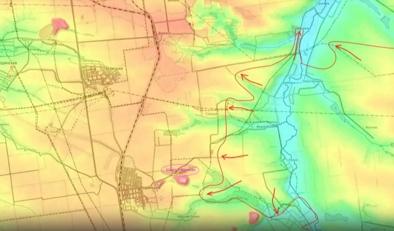 "Вернее, пока к Родинскому они не вышли, но они вышли к шахте Родинская, до неё им осталось всего лишь один километр, а также уже вышли на окраину населенного пункта Красный Лиман. Чем интересен Красный Лиман? Он очень длинное такое село, тянется на несколько километров по балке и, что самое важное, жилая застройка Красного Лимана плавно переходит в жилую застройку Родинского. Таким образом, если мы зацепимся за жилую застройку Красного Лимана, мы по ней, думаю, довольно быстро пойдем на Родинское и попытаемся зайти в этот городок", - уточнил военный эксперт.