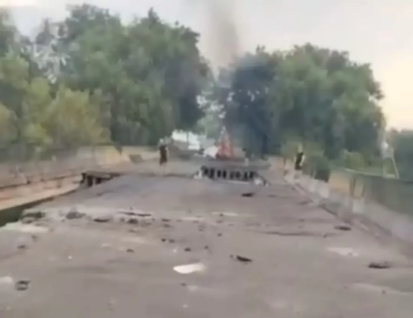 ВС РФ ударили по мосту через реку Волчья в районе поселка Великомихайловка