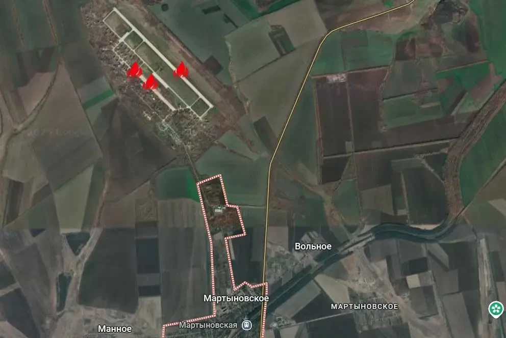 Как минимум три очага пожара фиксируется на аэродроме Мартыновское в Николаевской области. Военный объект, по которому прилетело в ночь на вторник, расположен примерно в 75 км северо-западнее Николаева.