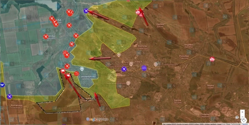На Константиновском направлении российские войска расширили контроль территории западнее Щербиновки, ведут зачистку Новоспасского (Петровки). Продолжаются интенсивные боестолкновения южнее Александро-Калиново и в Яблоневке. ВС РФ ведут штурмовые действия в Русином Яру.
