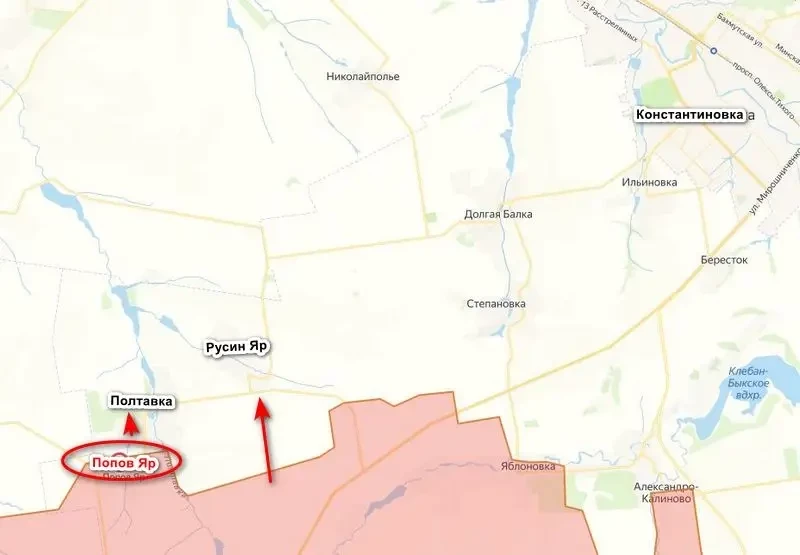 Взятие Попова Яра позволяет нашим войскам наступать на Полтавку, что сейчас и происходит, а переправившись на другой берег, ударить на Русин Яр. Кстати, наступление на Русин Яр началось дней пять назад.