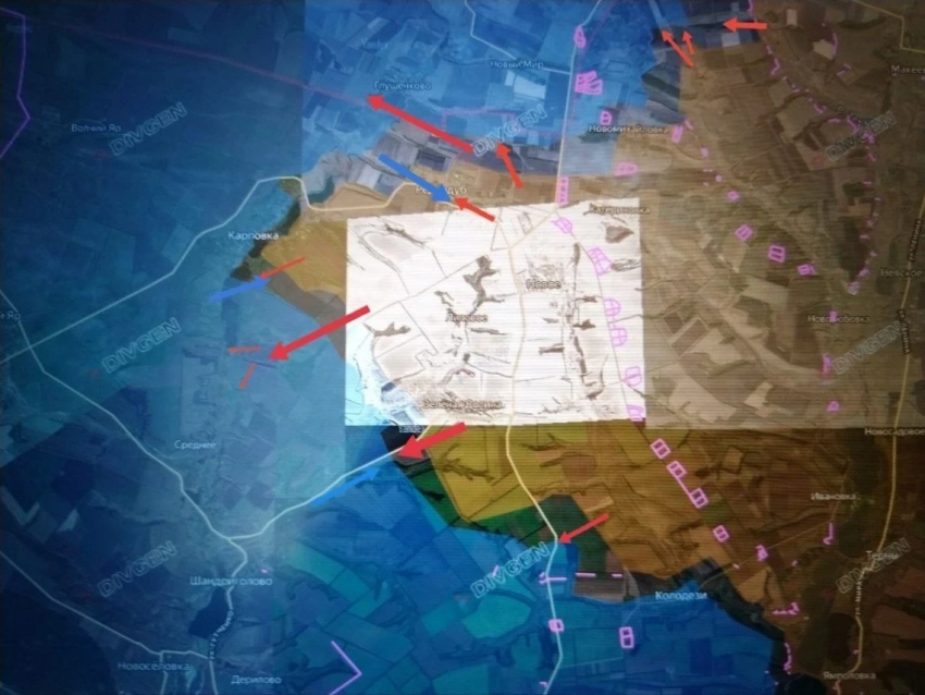 На Угледарском направлении ВС РФ ведут бои на окраинах Зелёного Гая. Его освобождение позволит армии России выйти на рубеж Искра-Новосёловка по руслу р. Волчья. Можно предположить, что в ближайшее время российские передовые части могут широким фронтом выйти на административную границу ДНР: на северном фасе в Ивановке, на южном фасе - в Темировке. Опасаясь такого сценария, ВСУ перебрасывают резервы, чтобы сдержать наступление к Ивановке, Филии, а также и к Новопавловке с юга.