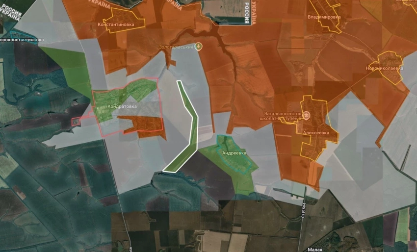 В Сумском приграничье, в районе Тёткино, не прекращаются попытки ВСУ просочиться на российскую территорию. Наши войска закрепились на севере украинской Рыжевки, расширили зону контроля у Бессаловки. Восточнее группы ВСУ по 2-3 человека безуспешно пытаются пройти к асфальтовой дороге Волфино-Весёлое-Глушково и закрепиться. Под контроль наших войск перешло нескольких кварталов Варачино. Село маленькое, наверняка скоро будет освобождено полностью. Кроме этого, ВС РФ продвинулись в западной части Юнаковки, ведут бои на севере Мирополья.