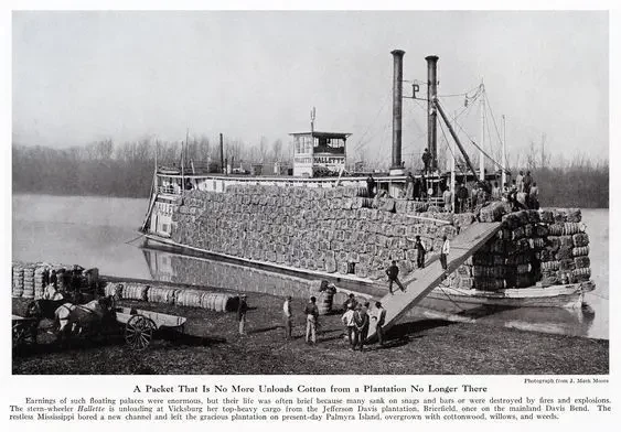 А это пароход с грузом бочек! Так и видится мне диорама: пароход с бочками и людьми. Узкая река. А вокруг пальмы, пальмы, пальмы...