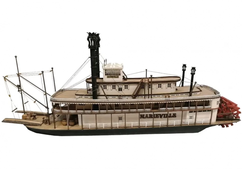 Интересно, что сегодня выпускается и сборная модель парохода «Мариевилль», о котором речь шла в предыдущем материале. Производит ее фирма «Дайзар»(Disar) в масштабе 1:72. Причем о ней я до этого времени ничего не слышал. Это очень крупный масштаб для судомодели, так что общая длина ее составляет 66,5 см, высота: 26,5 см, а ширина - 14 см.