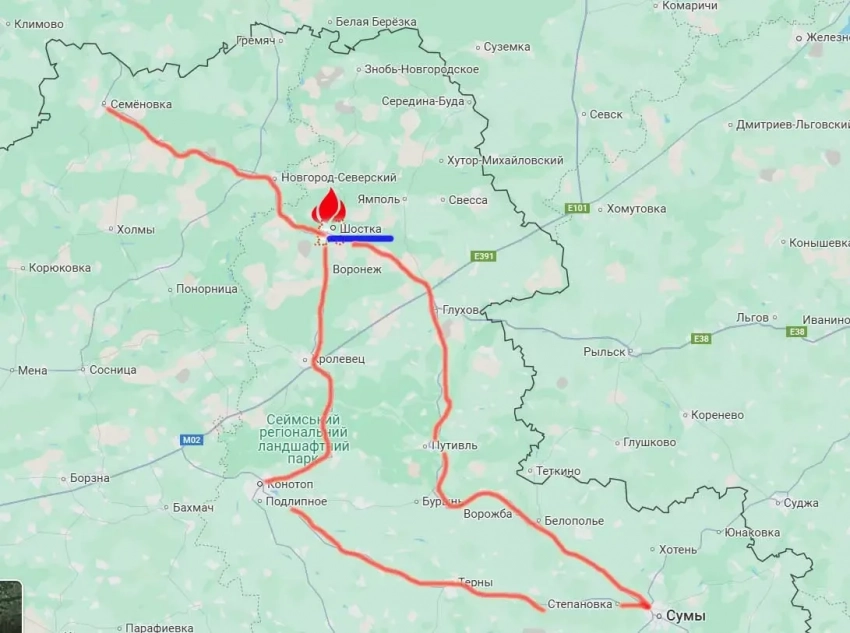 Шостка продолжает оставаться важным промышленным городом и не менее важным узлом транспортной логистики ВСУ. От неё идут дороги на север Черниговской и на восток Сумской областей – непосредственно к границам России. При этом Шостка является центральным звеном значимого для противника транспортного коридора от Путивля и Глухова до Новгорода-Северского и Семёновки. Эта дорога активно используется для переброски сил и средств ВСУ между приграничными районами. Также через Шостку проходит дорога на Конотоп, Кролевец и Сумы, и используется она для снабжения ВСУ там, где сейчас идут бои – в районе сёл Кондратовка, Хотень и Юнаковка.