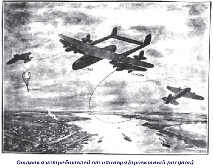 Доставив планер в заданный район, истребители осуществляли прицеливание, отделялись от планера и возвращались на базу. После отцепки истребителей планер под управлением автопилота должен был лететь по направлению к цели и по истечении заданного времени перейти в пикирование. Однако проект не нашел поддержки у руководства и не реализовывался.