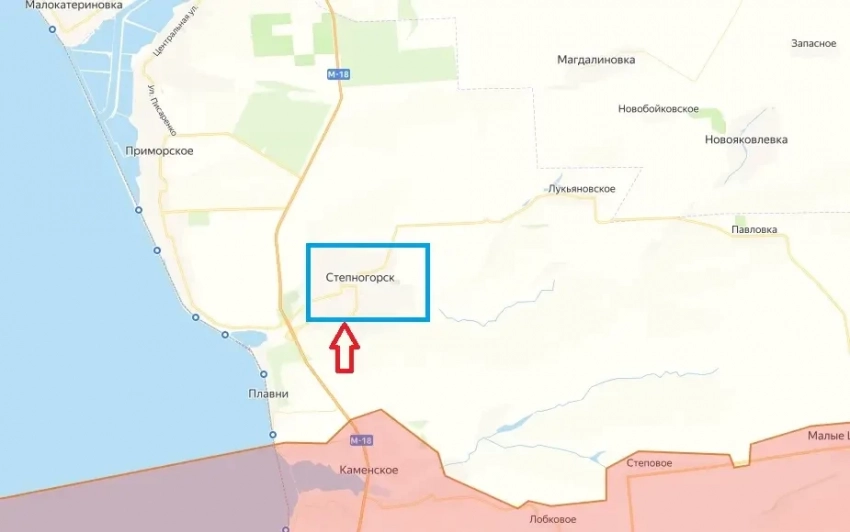 В настоящее время, по данным объективного контроля, наши войска подходят к окраинам Степногорска — довольно крупного населенного пункта, примыкающего с северо-востока к Плавням, расположенным на берегу бывшего Каховского водохранилища.