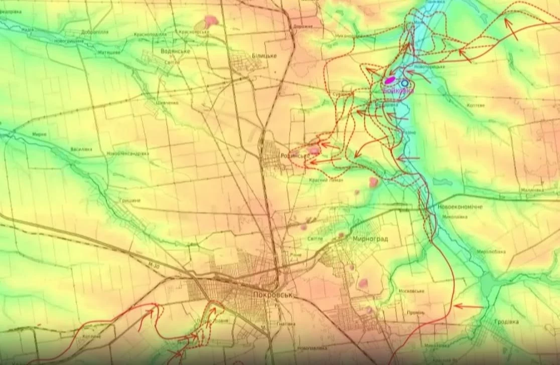 "Полностью, я напомню, мы накануне заняли населённый пункт Суворово, а сейчас уже идёт информация о том, что большая часть Никоноровки тоже под нашим контролем. Более того, мы по посадкам пошли далеко на север и таким образом плацдарм на западном берегу Казённого Торца и соответственно охват Покровско-Мирноградской группировки с севера очень быстро увеличивается", - пояснил Подоляка.