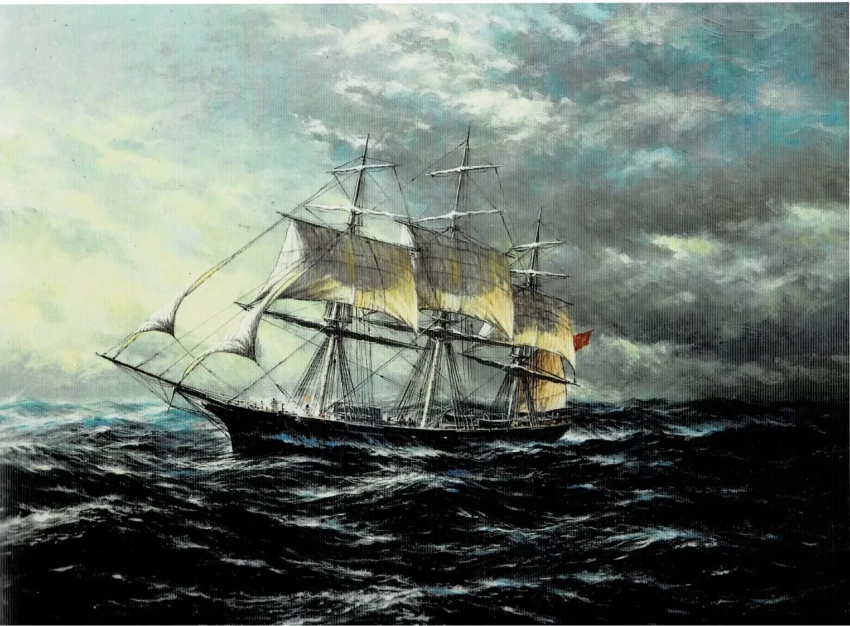 7. Клипер «Лейлу», идущий в галфинд. Холст, темпера, акрил. 44,5Х58,3 см. 2007 г.