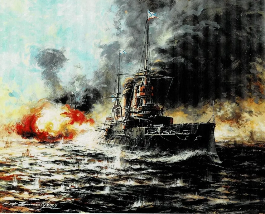 9. Эскадренный броненосец «Орел» 1905 г. Бумага, темпера, гуашь, 43х39, 2005 г.