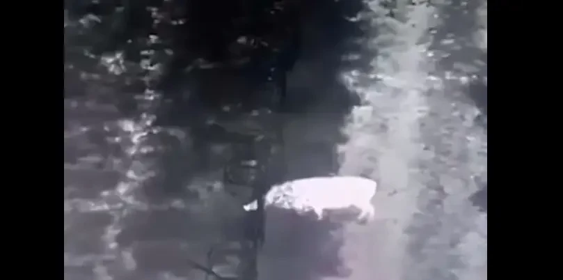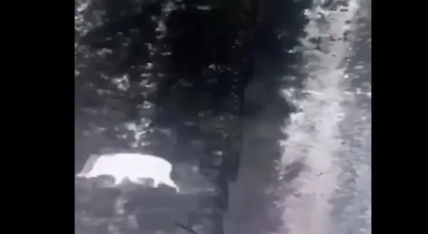 На соответствующем видео, снятом в ночное время, можно заметить, как дикое животное подходит к забору из колючей проволоки и спокойно протискивается через ограждение. При этом всё действо сопровождается весёлой музыкой.