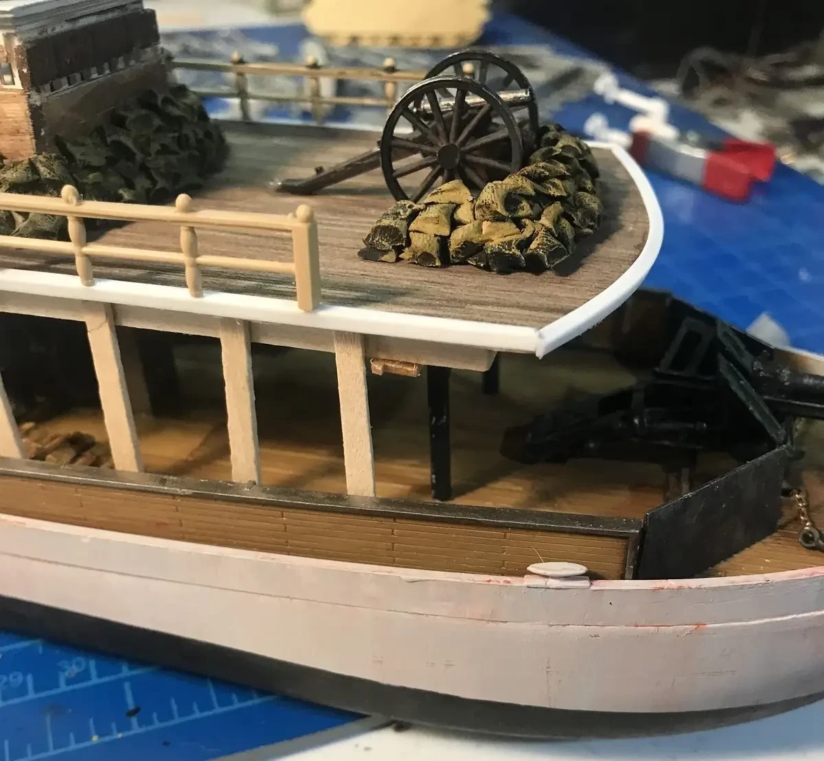 Отсутствие брони серьезно ограничивало возможности таких «канонерских лодок», и потому миссисипские пароходы для участия в боевых действиях начали бронировать. Южане, ничтоже сумняшеся, стали использовать в качестве брони… тюки хлопка, создавая из них «броневые стенки», закрывавшие котлы, паровые машины, рубку и палубу, на которой располагались орудия, стрелявшие через амбразуры. Дешево и сердито. Вот только защищала такая броня только от пуль и совсем уже мелких снарядов, а против снарядов той же пушки Паррота она непреодолимой преграды не представляла.