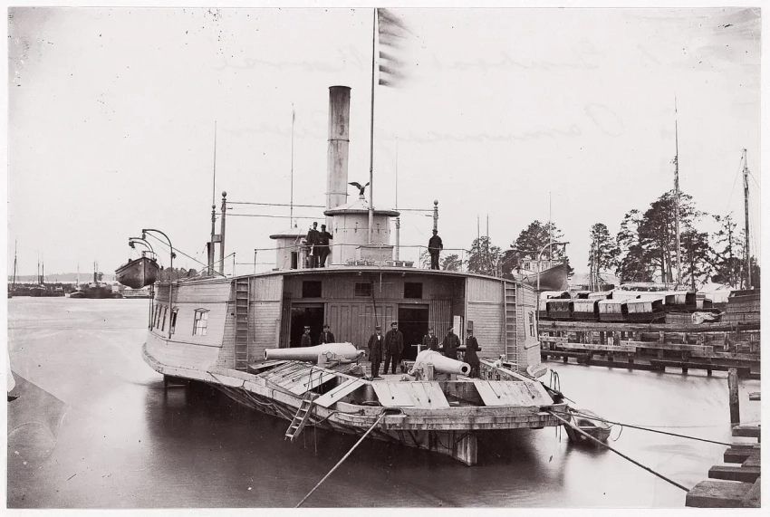 Конечно, многие из них, как и раньше, продолжали возить хлопок и разные другие грузы теперь уже военного назначения. В принципе, превратить миссисипский пароход в боевое судно было нетрудно. Достаточно было срезать надстройки двух верхних палуб, возвести на том, что осталось, баррикады из мешков с песком и поставить за ними артиллерийские орудия, те же, скажем, гладкоствольные «наполеоны», которые были на вооружении как северян, так и южан.