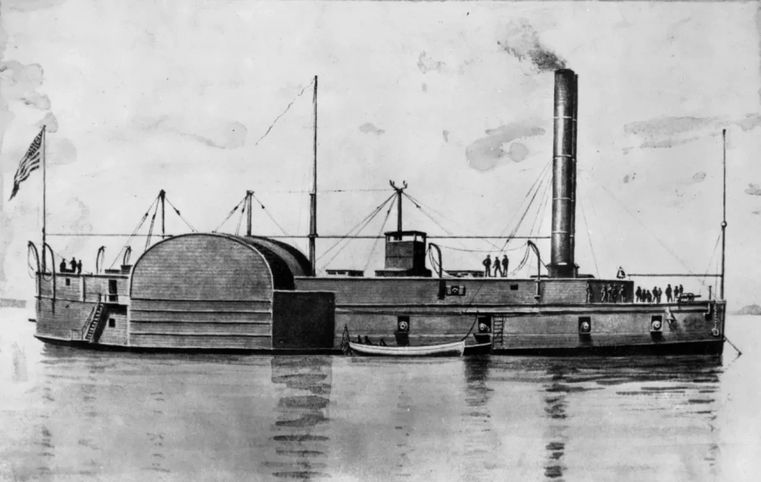 Таким, в частности, был броненосец северян «Чокто», названный так в честь одноименного индейского племени. На воду этот пароход, который изначально броненосцем, естественно, не был, спустили еще в 1856 году. Это было типичное двухколесное грузо-пассажирское судно, которое до 1862 года совершало торговые рейсы по реке Миссисипи. Во время гражданской войны оно было куплено армией Соединенных Штатов и переоборудовано в броненосец. На него установили железный подводный таран, а всю надводную часть защитили плоскими бронелистами и обложили «броней» из железнодорожных рельсов, заходивших друг за друга и таким образом создававших сплошную наклонную металлическую поверхность.