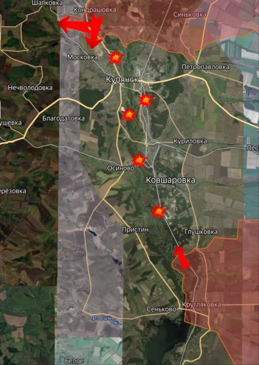 В Купянске продолжаются бои за Московку, часть которой находится в серой зоне. Российские диверсионно-разведывательные группы (ДРГ) проникают глубоко, вплоть до стадиона «Спартак», но устойчивый контроль над территорией пока не установлен.