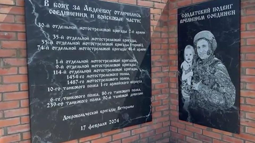 "Здесь же вывешены все флаги основных подразделений, которые участвовали в штурме Авдеевки. Также поставлены новые памятные плиты, на которых выгравированы названия всех подразделений, которые штурмовали город", - рассказал корреспондент "Известий" Евгений Быковский.