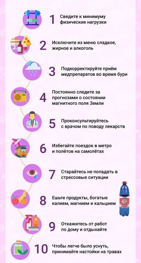 Врач-диетолог, гастроэнтеролог Нурия Дианова уточнила, что в период магнитных бурь следует включать в рацион питания сухофрукты, травяные чаи и ягоды тёмного цвета. Они значительно улучшат состояние здоровья метеозависимых.