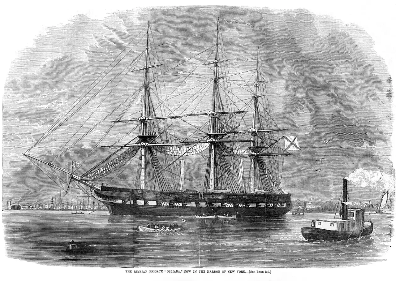 Фрегаты «Александр Невский», «Пересвет» и «Ослябя» входили в состав эскадры адмирала Степана Лесовского, совершившей экспедицию к побережью США в годы Гражданской войны в этой стране. Пушки русских фрегатов тогда достаточно сильно остудили желание англичан вмешаться в «американскую усобицу» на стороне Юга.