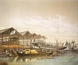 Спуск на воду французского корабля, на стапелях достраиваются фрегат «Светлана» и яхта «Штандарт».