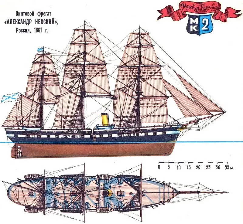 Бурная деятельность генерал-адмирала Великого Князя Константина Николаевича дала Российскому Императорскому флоту юркие канонерки с миноносками, быстроходные клиперы и красавцы корветы, но всё это... Не для серьёзного боя! Клипер с его 6 орудиями был страшен торговому кораблю, но боя с английским даже не броненосцем, а шлюпом не пережил бы. Корветы с 11 и 17 пушками также были «уничтожителями торговли», разведчиками и первопроходцами, но в серьёзном бою и им пришлось бы туго. Правда, и парусные линейные корабли к этому времени были не слишком перспективны. Более того, бомбические орудия при Синопе показали, что такого числа пушек, как на старых линейных кораблях, больше не нужно. Как впоследствии сформулировал идею адмирал Андрей Попов: «Уменьшать артиллерию числом и увеличивать калибром». Поэтому ещё одним классом кораблей, которые пополнили ряды российского флота, стали винтовые фрегаты. Это были уже корабли, вполне годные для боя с серьёзным противником!