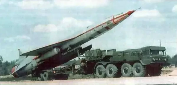 Беспилотный разведчик Ту-123 в стартовом положении на пусковой установке СТ-30