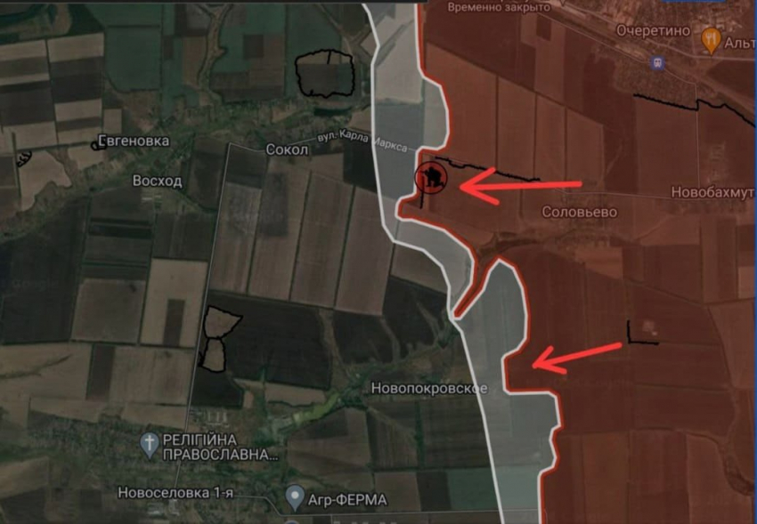 ВС РФ продвигаются к Новопокровскому с севера и юга. Восточнее села Сокол идут встречные бои вдоль лесополосы юго-западнее заброшенного полевого водохранилища. Российские войска предпринимают попытки выйти к Соколу через лесополосу вдоль балки Самойлова, информирует Telegram-канал "БелВПО". Продвижение на участке шириной до 1.6 км на глубину до 800 метров. Севернее Нетайлово и южнее Уманского (в направлении мехдвора) ВС РФ имеют тактические успехи.