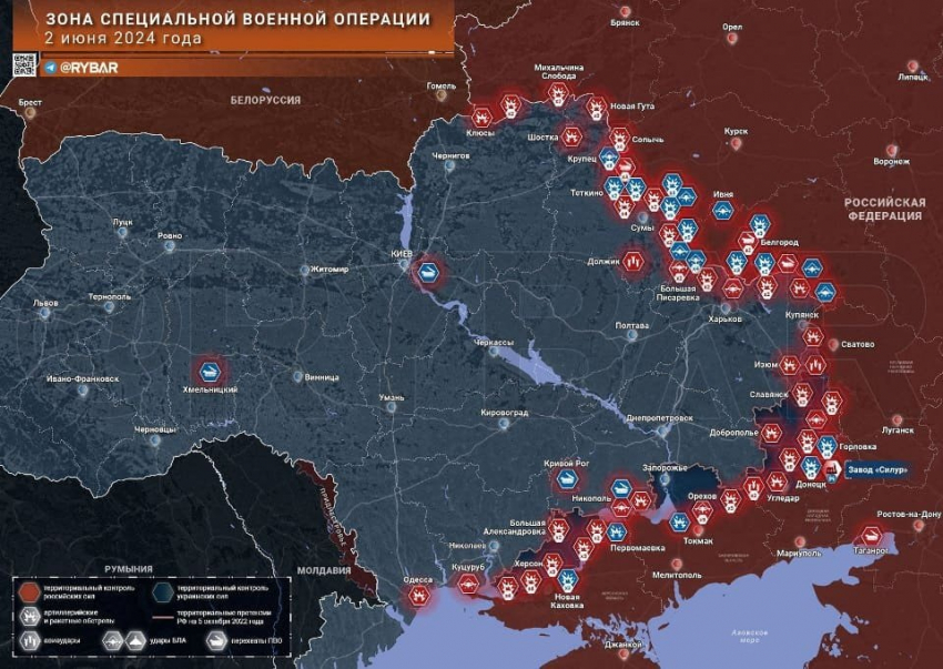 Новая карта боевых действий на Украине по данным на 3 июня 2024 года