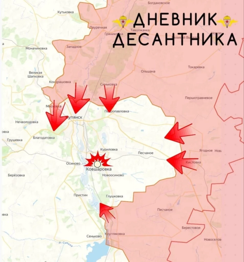 На Купянском фронте ожесточённые бои в районе Московки, Соболевки и Радьковки. С мест сообщают, что в последние дни усилились бои в районе Боровой.