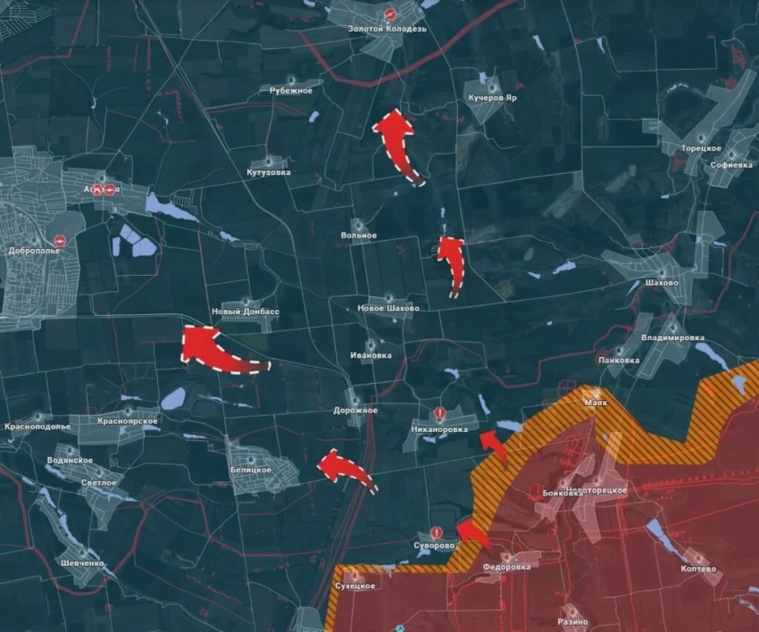 На Покровском направлении, по оперативным данным, ВС РФ закрепились юго-западнее ж/д станции в Удачном. Стараются усилить позиции наши бойцы в районе Котлино, это особенно важно на фоне сообщений о продвижении со стороны Родинского к Гришино с севера. Поступают единичные сообщения о полном контроле над Леонтовичами, а также об установлении нашими огневого контроля над трассой Покровск-Павлоград, но нужно дождаться подтверждения. МО РФ подтвердило освобождение Суворово и Никаноровки, это означает укрепление линии прорыва и усиление наших позиций восточнее Белицкого. Ресурсы противника сообщают об освобождении нашими Золотого Колодезя, но эта информация пока не подтверждена. Различные источники с обеих сторон сообщают о боях у Маяка, и Кучерова Яра. В Родинском тяжёлые бои, инициатива на стороне ВС РФ. Украинские военные утверждают, что только на Покровском сосредоточено 110 тысяч личного состава ВС РФ. Украинские спикеры говорят о том, что причиной прорыва ВС РФ стала «слабая коммуникация между подразделениями, неэффективное применение войск, ложь на всех уровнях, отсутствие адекватных решений».