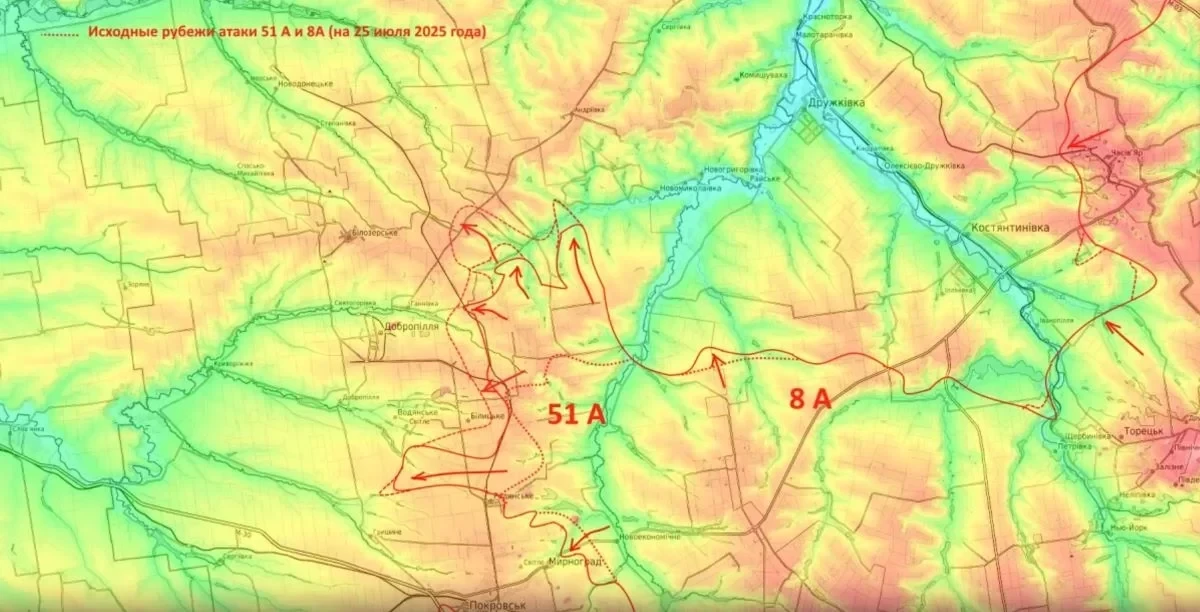 При этом наступление 8-й армии, начатое в те же сроки, показывает гораздо более скромные результаты. Несмотря на наличие серьёзных сил, 8-я армия не смогла прорвать оборону ВСУ на северо-западном Донбассе и выйти к Константиновке или Дружковке. Подоляка отмечает необходимость организационных изменений в командовании армии, иначе временные успехи могут обернуться стагнацией.